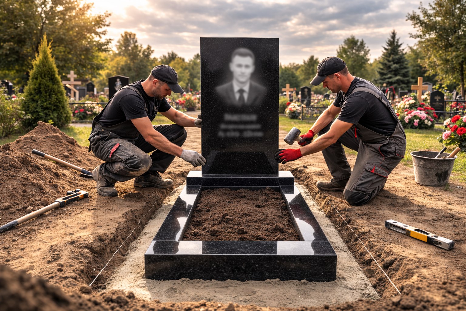 Выполняем профессиональную установку памятников и комплексное благоустройство места захоронения. Наши опытные мастера выполняют все работы аккуратно и качественно, а индивидуальный подход позволяет оформить территорию так, чтобы место памяти выглядело ухоженно, красиво и достойно.