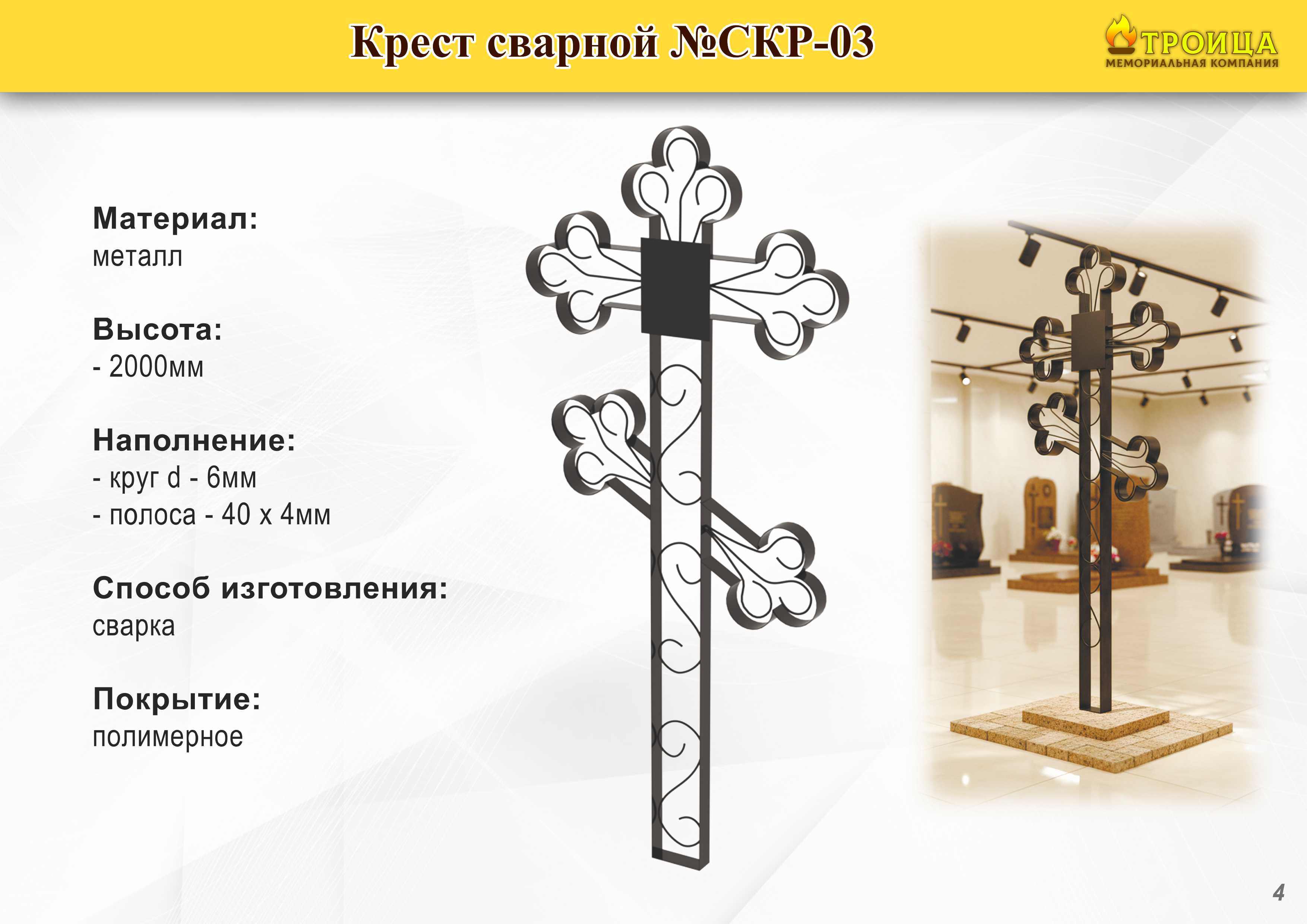 Изготавливаем надежные и аккуратные металлические кресты для установки на могиле. Все конструкции проходят тщательную обработку и покраску, что защищает металл от коррозии и сохраняет внешний вид на долгие годы. Мы предлагаем достойное качество по доступной цене. Возможно изготовление как классических, так и индивидуальных вариантов.