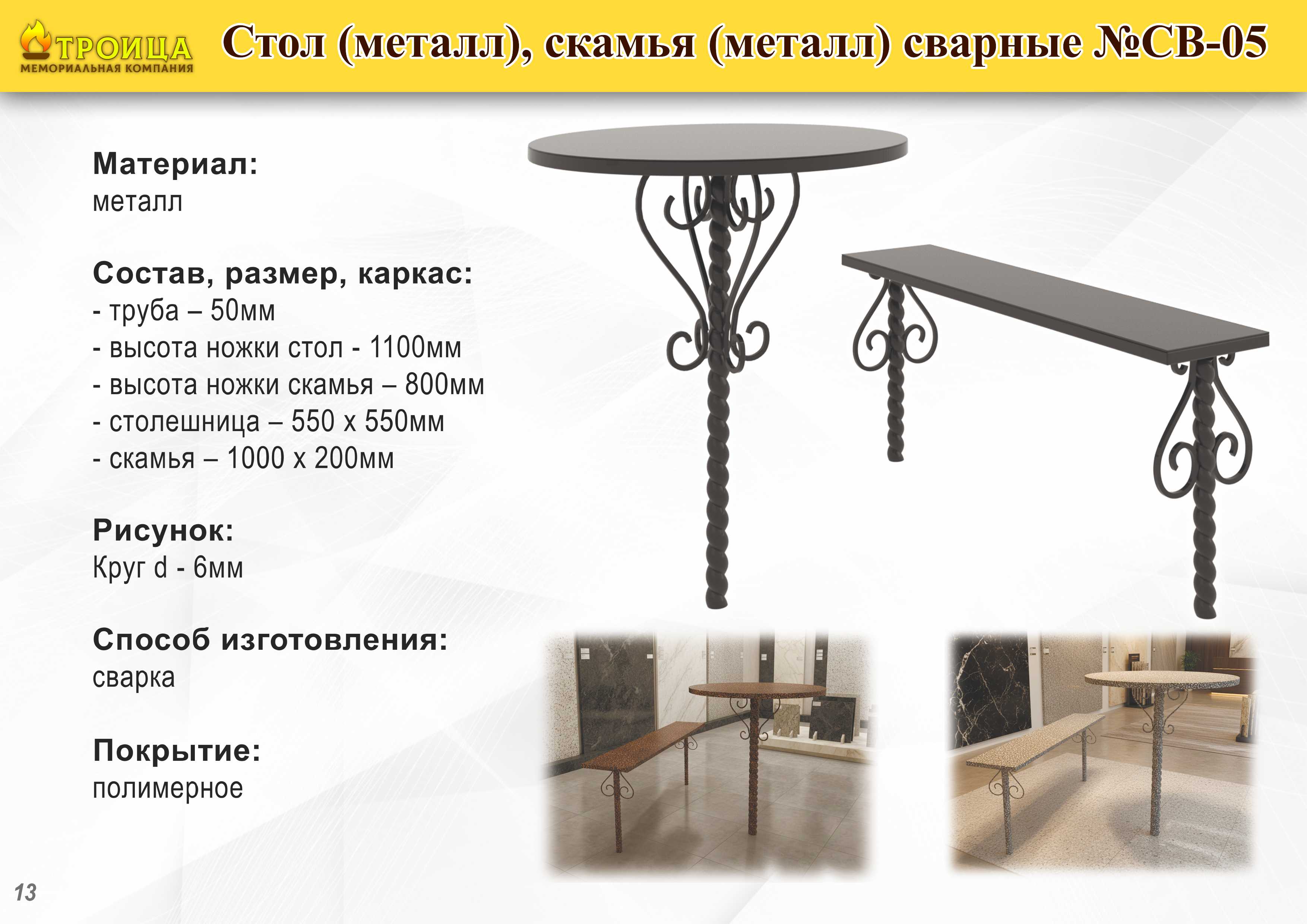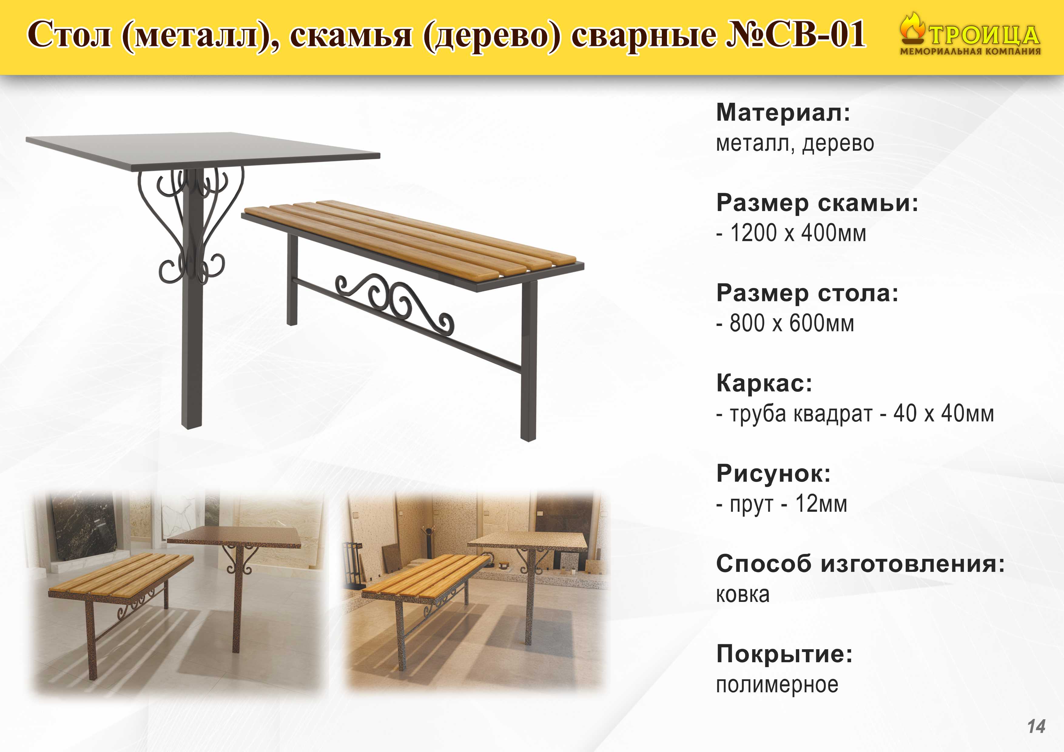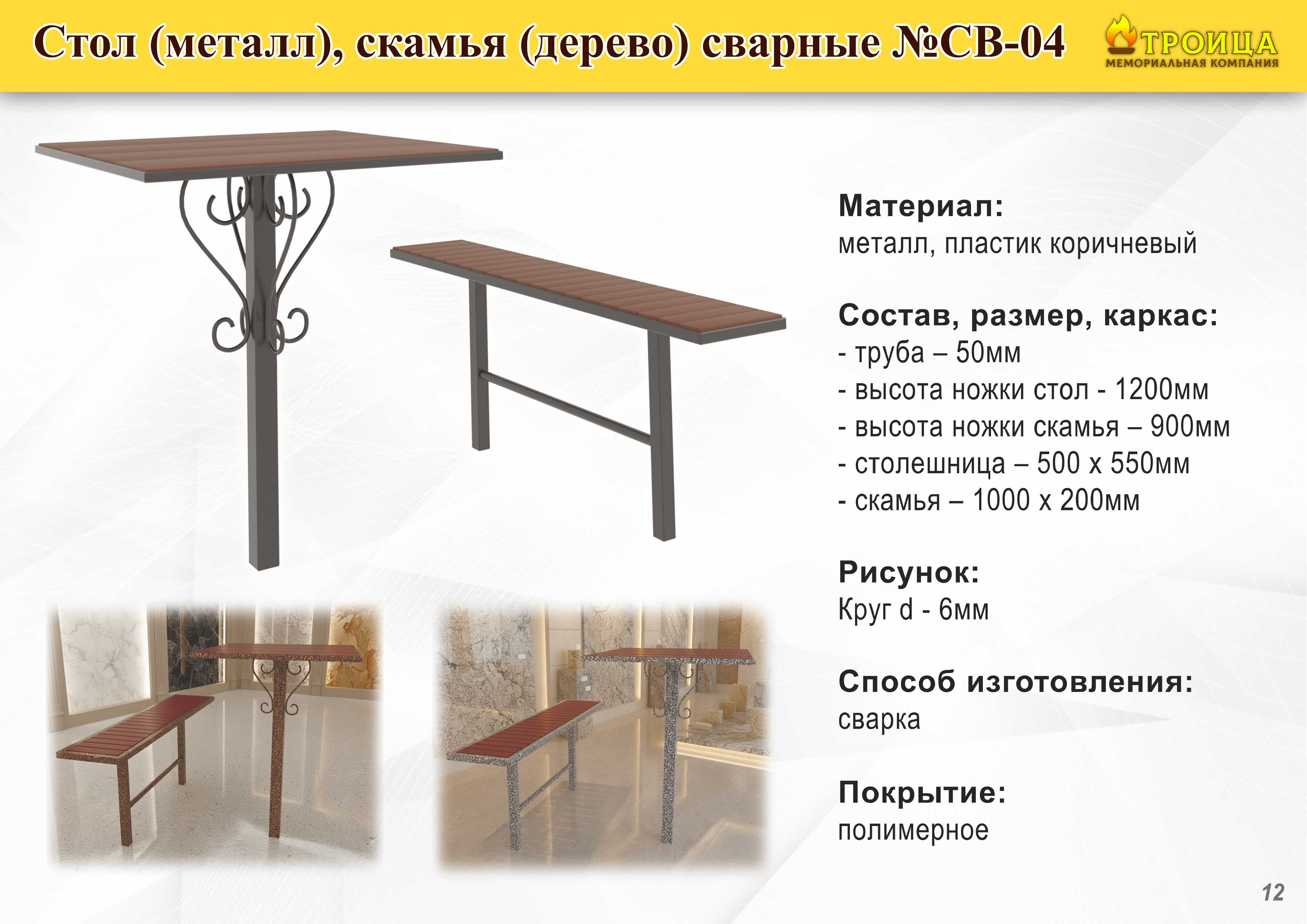 Изготавливаем столы и лавки для благоустройства мест захоронения из металла и натурального камня. Все изделия выполняются в едином стиле с мемориальным комплексом и учитывают особенности участка.