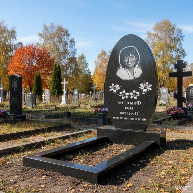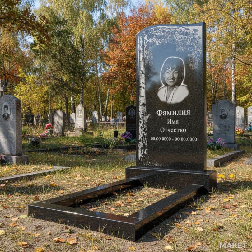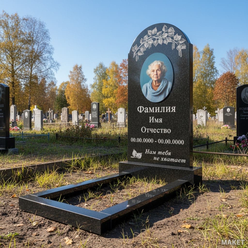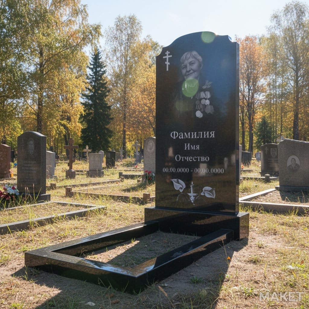 Гранит Габбро — натуральный российский камень высокого качества. Классический чёрный цвет делает памятник строгим и благородным, а однородная структура обеспечивает аккуратную и чёткую гравировку на протяжении многих лет. Надёжный и долговечный материал, проверенный временем.